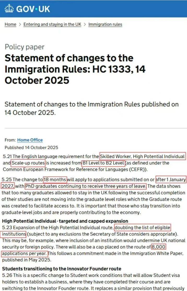 1、上调工签语言要求,英国工作签证的英语要求从B1提高到B2(雅思 5.5分)。