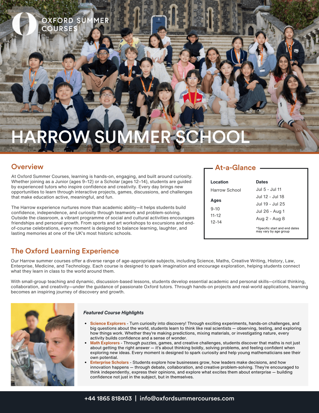 哈罗夏校是牛津暑期课程(Oxford Summer Courses)旗下的精品项目,依托哈罗公学的优质资源,为 9-14 岁青少年打造集学术探索、个人成长与跨文化交流于一体的沉浸式夏校体验。