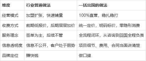 出国劳务行业里,加盟扩张是最省事的做大规模的方式——放个牌子、收点加盟费、全国快速铺开。但一括从第一天起就明确:我们不做加盟,只做直营。原因很简单:加盟模式最大的问题,就是质量参差不齐。